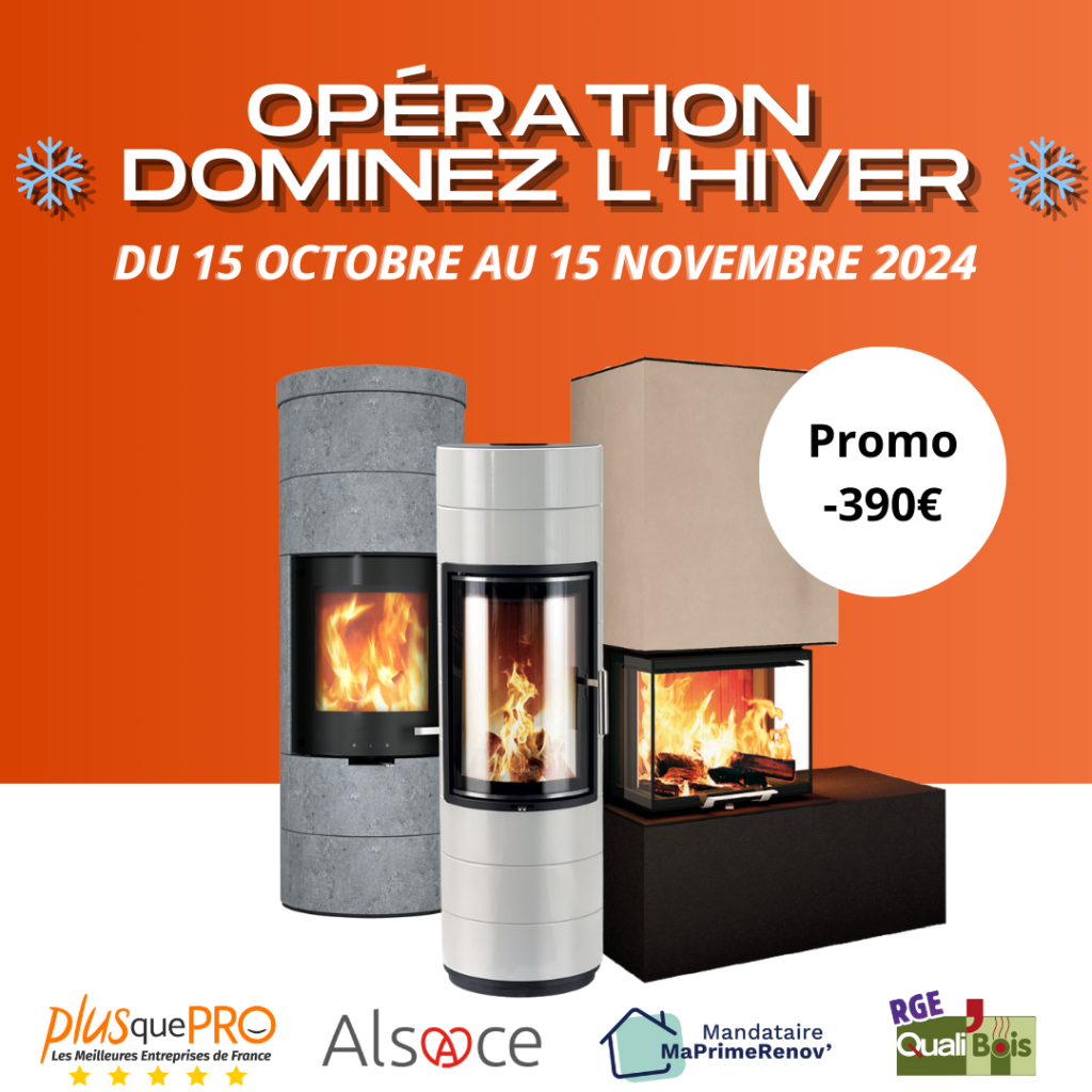 Opération « Dominez L’Hiver » : Profitez de 390 € de réduction sur votre devis pour toute installation de poêle à bois. Offre jusqu’au 15 novembre !